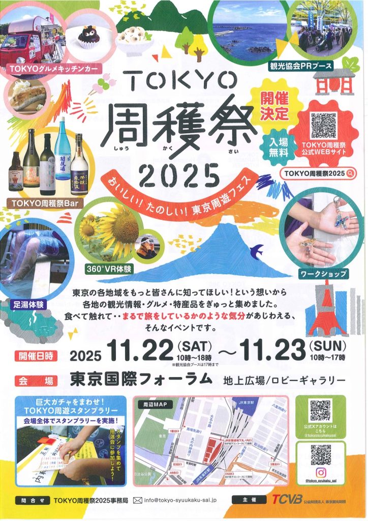 東京の各地域をもっと知ってほしい、という想いから各地の観光情報・特産品をぎゅっと集めたイベント「TOKYO周穫祭2025」が開催されます。