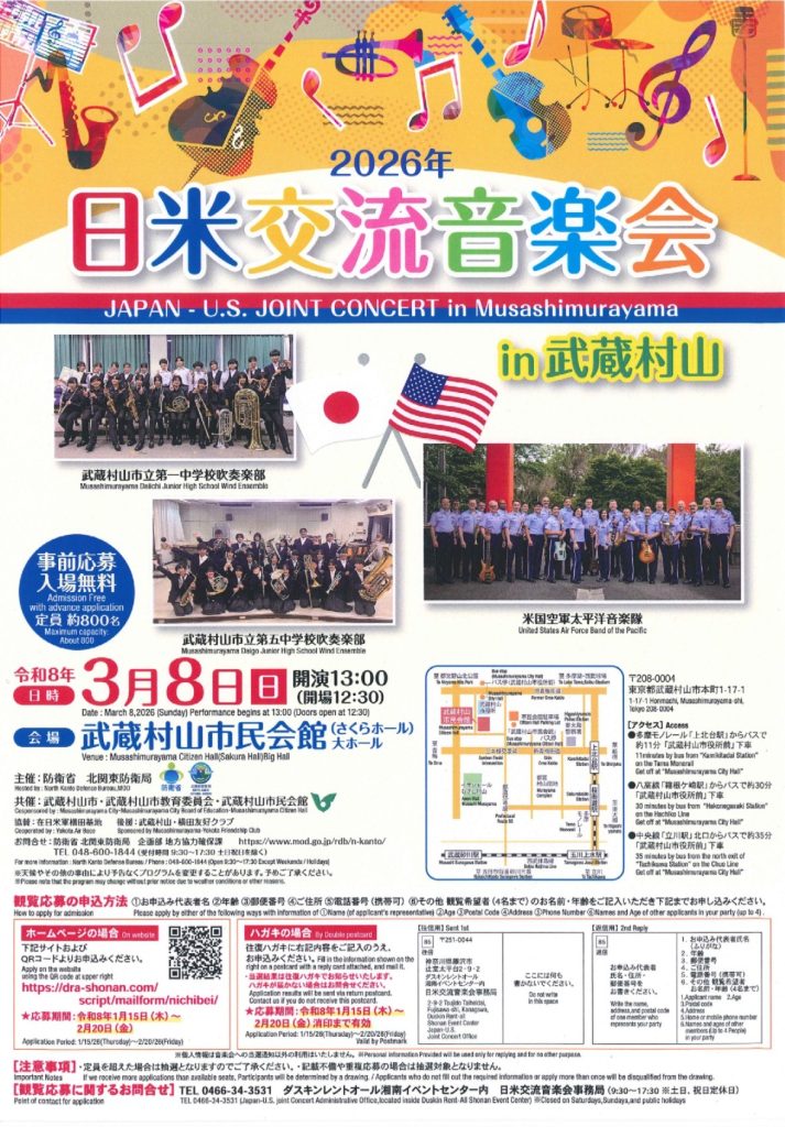 3月8日に武蔵村山市民会館(さくらホール)にて「2026年日米交流音楽会in武蔵村山」が開催されます。